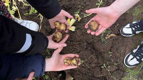 Third grade harvests potatoes.